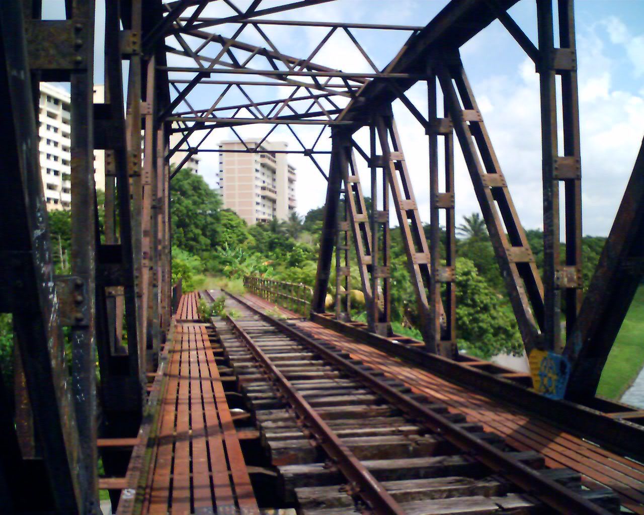 Sorry if u find it an eyesore to see me appearing in almost all the pics, i jus wanna show how the tedious path tt i took yday . Frankly speaking, i didnt expect this railway track, which was once busy with transportation activities, could so easily be hidden (and probably forgotten) by thick overgrowing vegetations. Look at pic 2 & 4, would u believe that trains used to run through the place where i was standing and squatting? Well, jus like human beings - if u r no longer of value to the society, u will be casted aside and soon be forgotten for your existence - LOL.Now my arms are attacked with rashes, which i guess was due to my allergy to certain leaves/vegetations. Also suffer a few cuts on my arms and ankles. Anyway, its really exhilarating to stand on top of the metallic bridge which oversees Sungei Ulu Pandan. If u r not afraid of heights, and dare to walk on thin corroded metal planks, i dun mind bringing u there one fine day :D